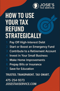 Jose’s Tax Service | Trusted. Transparent. Tax-Smart. Getting a tax refund feels great — but what you do with that money can make a…