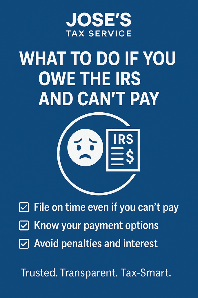 Jose’s Tax Service | Trusted. Transparent. Tax-Smart. Opening your tax return and seeing a balance due to the IRS can be scary — especially if you…